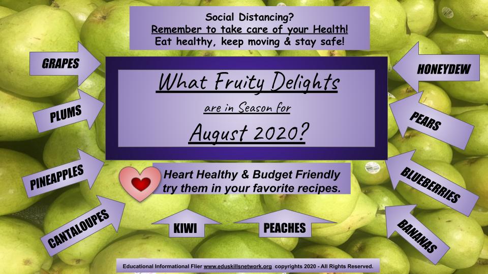 Keeping up with seasonal fruits and vegetables may seem unnecessary, but knowing what’s in season can help make it easier to create a shopping list. Knowing what’s in season can make it easier to find specific fruits and vegetables that are available in stores, and make it easier to enjoy a healthier diet on a budget. Listed below are the different fruits and vegetables that are in season for the month of August.